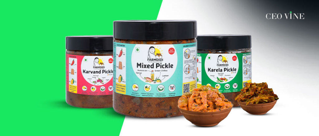 FarmDidi, based in the small village of Manjri near Hadapsar, Pune, is more than just a pickle brand—it’s a brand with heart. Founded by Manjari Sharma, known as the “Chief Didi,” along with her husband Anukrit Johari and partner Asmita Ghodeshwar, FarmDidi is all about empowering women in villages.